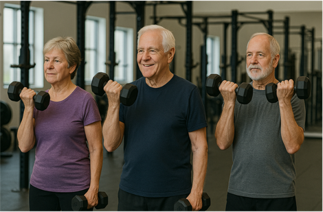 Sarkopenie und Alterung: Mit zunehmendem Alter verlieren wir an Muskelmasse, die für unsere Kraft und Beweglichkeit entscheidend ist. Dieser unbeabsichtigte Verlust von Skelettmuskulatur wird als Sarkopenie bezeichnet. Gezieltes Krafttraining in Kombination mit Ausdauertraining verhindert den Muskelabbau.
